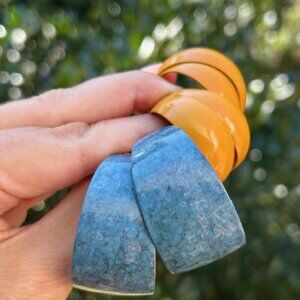 • Largest Green, Blue and Yellow Checkered Gold-Plated Hoop Earrings