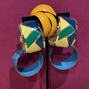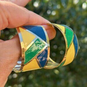 • Fun Vintage 1980s Large Wide Hoop Enamel on Metal Pierced Earrings