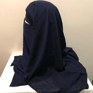 3 Layer Niqab Long BLUE Veil Muslim Hijab