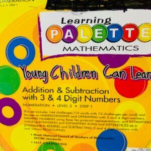 Gently Used - 3 Learning Palette Bases and 3 Activity Disks (12 cards x 3 = 36 challenges all total) with case included. The Learning Palette is a self-correcting, hands-on learning tool that uses discs and cards to reinforce grade-appropriate skills. It's designed to be fun, engaging, and effective, encouraging independent learning through self-directed activities and is self-correcting: