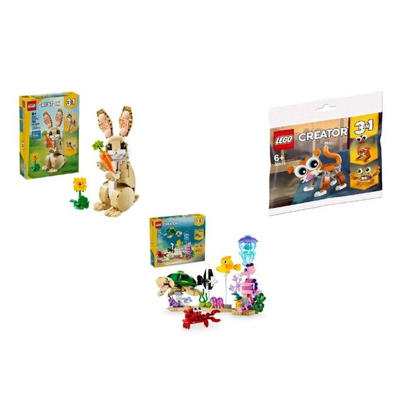 3 Lego Creator Sets: 30574 Cute Cat, 31158 Sea Animals, 31162 Cute Bunny