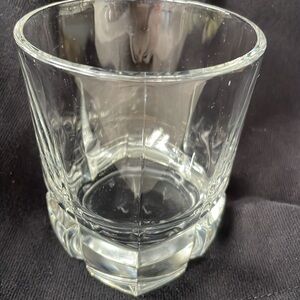 3 Libbey Double Old Fashioned Rocks Glasses, known for its heavy, cut-glass design. The glasses have a square bottom and vertical/horizontal cuts, giving them a distinctive and classic look in very good condition.