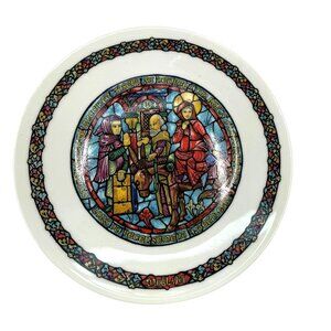 These collector plates from Limoges, France, beautifully depict scenes of religious significance with a stained glass effect, encapsulating the essence of Christian artistry. Each plate illustrates a unique scene from the Christmas story, making it a meaningful addition to any collection or spiritual setting.