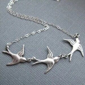 "3 Little Birds" Sparrow Gold Dainty Pretty Bohemian Hippie Peace Gift Necklace