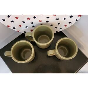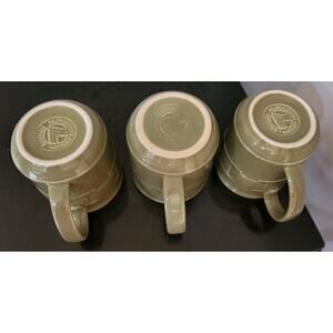 3 Longaberger Woven Traditions Pottery Heritage Sage Green Coffee Mugs