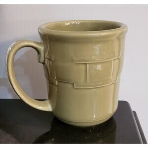 Add a touch of tradition to your coffee routine with this set of 3 Longaberger Woven Traditions Pottery Heritage coffee mugs. The sage green color and toleware style make them a perfect addition to any kitchen or collection. Crafted in the United States, these mugs are not only beautiful but also durable. The set includes a lot of 3 mugs, perfect for sharing a cup of coffee with friends or family. These mugs are not handmade, but their quality and design are sure to impress. Ideal for collectors or those looking for unique dinnerware, these mugs are a must-have.