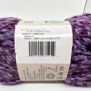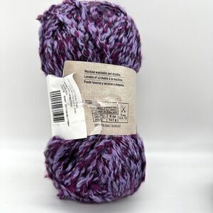 3 Loops & Threads country loom yarn. 104 yds in each skein. 5 oz of each skein. 100% acrylic. Color is Nobility. One skein’s paper has ripped but was taped back together.