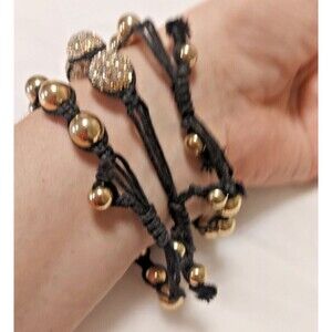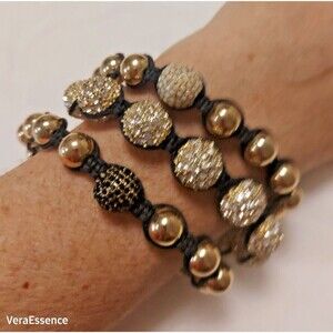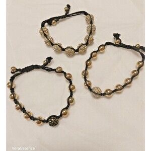 3 Lot Shamballa Handmade Gold Round Beads Braided Adjustable Bracelet Unisex NWT