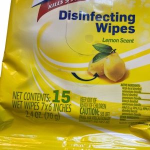 This listing is for 3 packages of Lysol Disinfecting Wipes. Lemon scent. 15 wipes in each passage. NEW