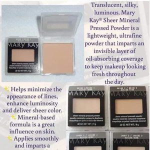 Brand new . Shade Ivory 2. Translucent, silky, luminous. Mary Kay® Sheer Mineral Pressed Powder is a lightweight, ultrafine powder that imparts an invisible layer of oil-absorbing coverage to keep makeup looking fresh throughout the day. Helps minimize the appearance of lines, enhance luminosity and deliver sheer color. Mineral-based formula is a great influence on skin. Applies smoothly and imparts a natural-looking finish. Helps control shine and excess oil for at least eight hours.