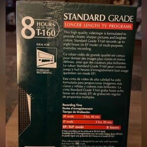 Maxell VHS Tape-Standard Grade-new Still sealed. This is a set of 3 individually wrapped VHS tapes. Standard grade T-160 records up to eight hours (in EP mode) of multi purpose, everyday recording.