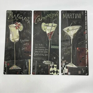 (3) Metal Bar Wall Art - Margarita, Cosmopolitan, Martini - Alcohol Signs 15.5”