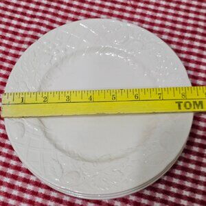 This beautiful classic pattern features an embossed design of fruits and flowers on a lattice background on white. The plates are microwave and dishwasher safe, making them perfect for all occasions.