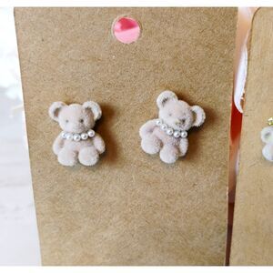 (3) NEW Flocked/Fuzzy Brown Bear Earrings Cute, Fun, Eclectic, Teddy Bears
