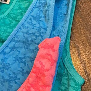 3 NEW with Tags Nikibiki Long Soft & Stretchy Burnout Tank Tops in Blue, Pink & Green.