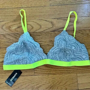 3 NWT Express One Eleven Contrast Lace Bralettes med Gray lace neon yellow
