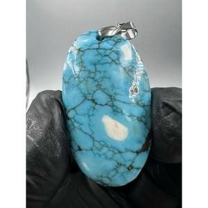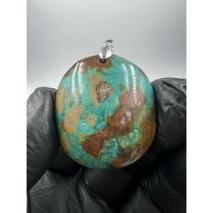 Natural Persian Turquoise Pendant Metal Brass Handmade With Rope.