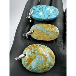3 Natural Persian Turquoise Pendants Metal Stainless Steel Hook Bulk Lot