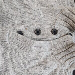 Stylish Nylon High Neck Sweaters. All buttons in tact, minimal pilling Colors are olive drab green, and light gray. 2 Green 1 Gray