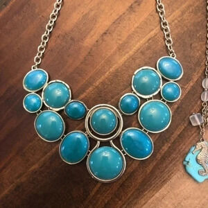 3 Necklace Nautical Bundle Statement Teal Turquoise Seahorse Octopus
