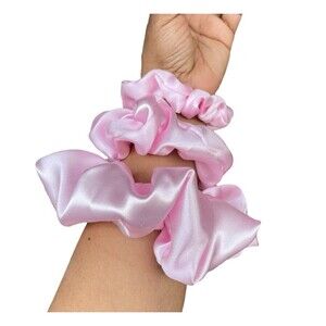 3 New Pink Satin Scrunchies Hair Tie XLarge, Large, Small Set