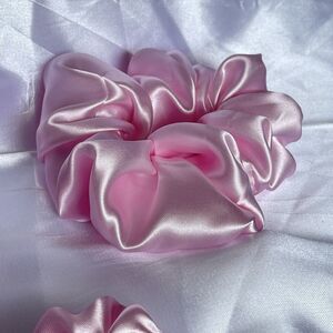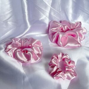 3 New Pink Satin Scrunchies Hair Tie XLarge, Large, Small Set. Shipping (1 business day)