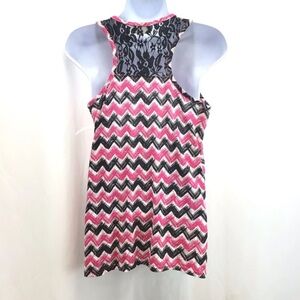 (1)- Bobbie Brooks top with lace panel racerback. Cotton blend.