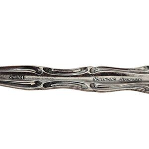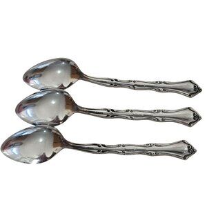 3 Northland model Soup Spoons inches stainless 90s vtg Baroque pierced floral in
