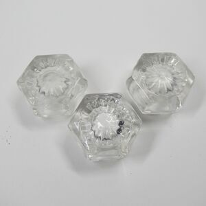 3 Open Salts Vintage Individual Salt Cellars Matching Hexagon Bowls Clear Glass