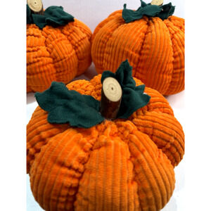 3 Orange Corduroy Pumpkin Plush Wood Stems Felt Leaves Fall Harvest Decor Jo-Ann