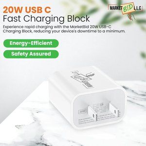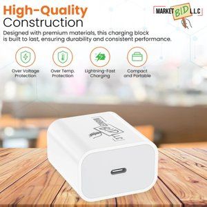 *Marketbid* (WHITE) Universal USB C Wall Charger, 2-Pack 20W Fast Charger Block, Type C for iPhone 11/12/13/14/15/Pro Max, XS/XR/X, iPad Pro, AirPods Pro, Samsung Galaxy and More.