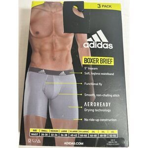 This is a 3-pack of men's adidas boxer briefs in size 2XL. Made of polyester and spandex microfiber fabric, these boxer briefs are lightweight, stretchy, and quick-drying, making them suitable for all seasons. The Aeroready technology ensures quick moisture absorption and evaporation, ideal for active individuals. Featuring a tagless design for added comfort, these multicolor boxer briefs are machine washable and come in a solid pattern with the adidas logo. Perfect for sports enthusiasts looking for high-performance underwear.