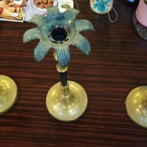 3 Palm CANDLE STICKS!!! EXCELLENT CONDITION!!! SAT IN MY LAKE HOME FRO COUPLE YEARS!!!
