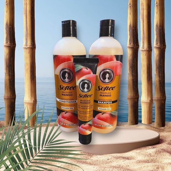 3 PIECE BUNDLE Softee® Brazilian MANGO Shampoo, Conditioner & Oil Combo Hair Set