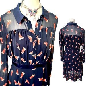 1. ADORABLE MOD CLOTH NEW WITH PARTIAL TAG FOX PRINT MIDI LONG SLEEVE DRESS MEDIUM.