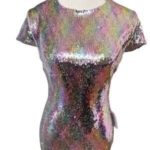 1. STUNNING B DARLIN SILVER SPARKLE RAINBOW IRRIDESCENT BODY CON PARTY DRESS 11/12/ LARGE NWT (JUNIORS)