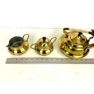 3 PC VTG Brass Pitcher Double Handles Lidded Spout Made in Holland MCM