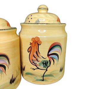 3 PC Hand Painted Rooster Canister Sugar Container Ceramic Set