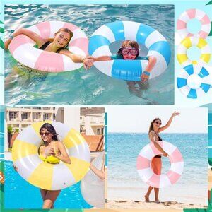 🧿PACKAGE INCLUDES:Package includes 3 striped pool floats in 3 vibrant colors, classic blue and white, pink and white, yellow and white stripes, perfect for the cheerful summer atmosphere, you will be the most noticed one in the pool.