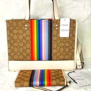 3 PCS COACH SET Handbag Purse Bag Shoulder Bag Wallet Wallet Charm NWT Matching