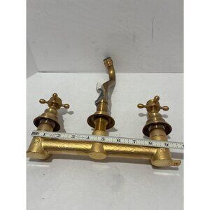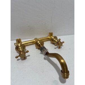 3 PCS Gold Brass Bathroom Faucet Wall Mounted Mixer Dual Handles Vanity Tap NWOT