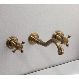 Elevate your bathroom decor with this elegant antique brass wall-mounted faucet. Featuring dual handles and a timeless design, it combines functionality with vintage charm, making it a perfect addition to any vanity.