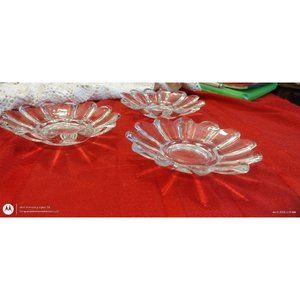 3 PCs Glass Flower Shaped Dish 12 Petals Trinket Bowl Candle Drip Dish.