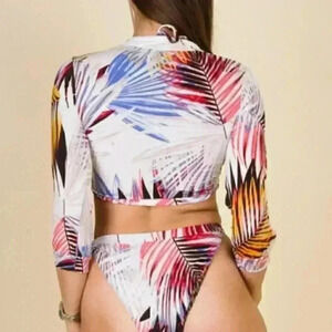 3 PIECE BIKINI SET, TROPICAL PRINT BIKINI WITH WITH A CROP TOP COVER
