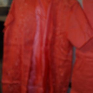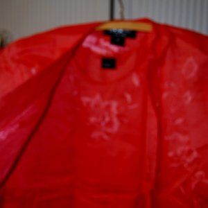 THIS IS A 3 PIECE PEACH TOP, JLONG JACKET AND LONG SKIRT WITH FLOWERS, SIZE 14, ALL MADE OF LINEN