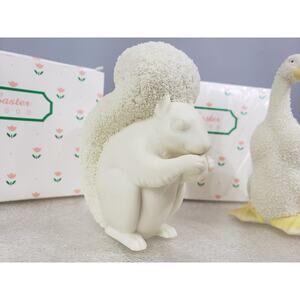 COLLECTION OF THREE DEPT 56 EASTER FIGURES - two ducks and one squirrel. The squirrel does not have its original box. One of the ducks is still sealed in the original packaging. The two used items are in very gently used condition with no damage. You will receive all 3 pieces.