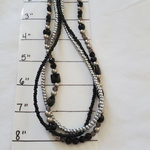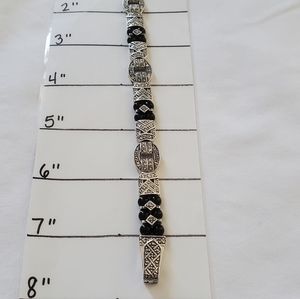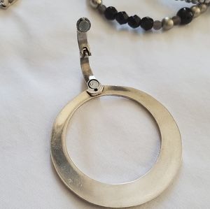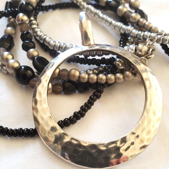 multi strand necklace with antiqued silver pendant with magnetic closure. Bracelet also has a magnetic closure