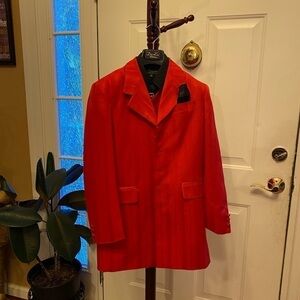 Child’s size 14 3 piece suit with tie, shirt is size 12 hat, and shoes are size 3 to match. Willing to break up set