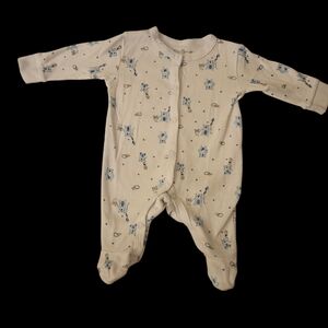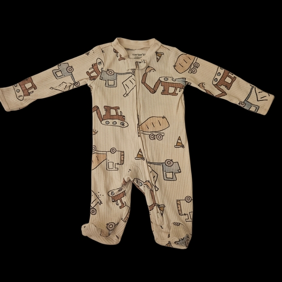 Adorable kids one piece featuring a playful construction print. Perfect for little builders.