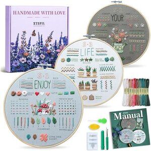 3 Pack Beginner Embroidery Kits for Adults DIY Starter Kit with 33 Stitch